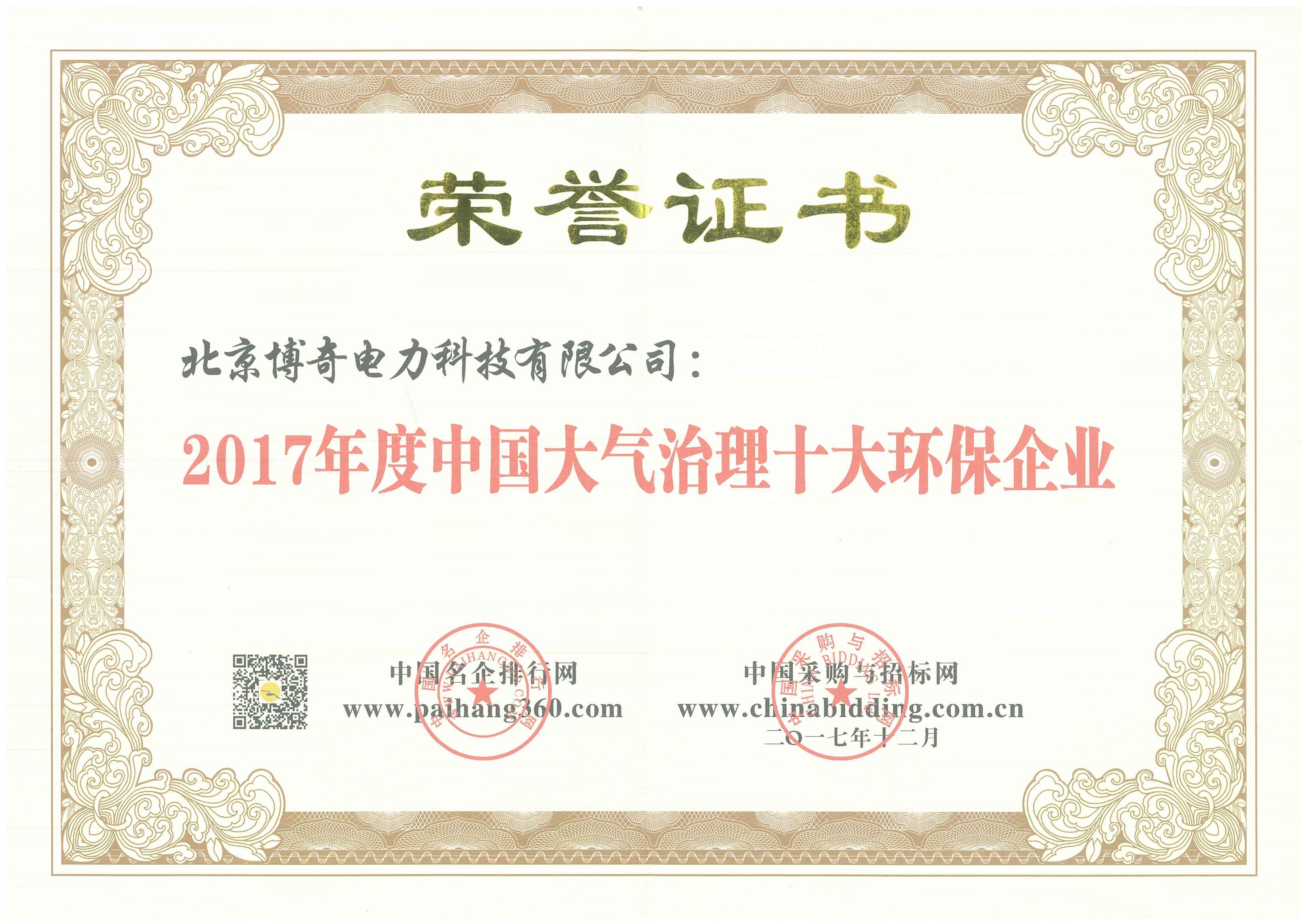 2018新年伊始,博奇公司参加了由中国采购与招标网、中国名企排行网联合组织开展的“2017年中国大气治理招标采购综合评价”活动,活动以“守护蓝天 树立标杆”为主题,对国内大气治理企业的实力进行综合评价。此次评选活动受到业内及社会各界的广泛关注,主办单位依据招投标大数据,秉承“公开、公平、公正、客观”原则,对参评的大气治理企业进行了综合评价。