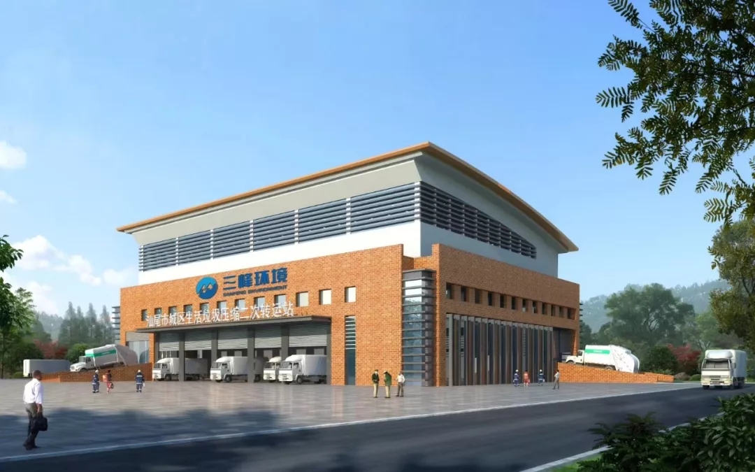 汕尾转运项目建设内容包含800吨/天的生活垃圾压缩转运站土建工程,配置3套200吨/天的压缩生产线(两用一备)和8台28立方米的箱体式勾臂垃圾运输车。全厂采用先进的压缩处理和中央控制系统,配备有负压抽风除尘、植物喷雾净化和渗滤液处理设备等。项目建成后,将全面提高汕尾市城区生活垃圾收运体系的整体标准,实现一体化生活垃圾收运处理,提高作业效率,降低运输成本,有效杜绝垃圾转运过程中产生的污水、臭气等二次污染,改善人居环境。