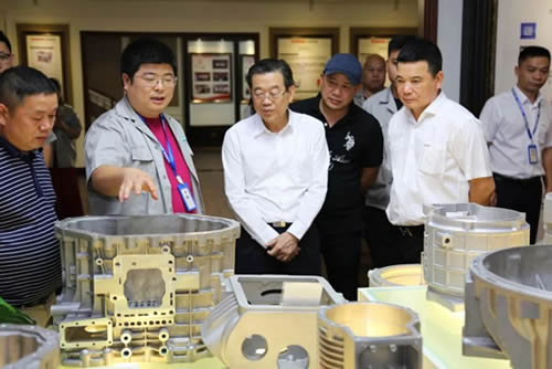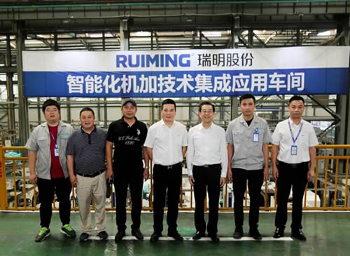 刘相尚先生一行在韩玉明董事长的陪同下参观了瑞明集团凯发平台的文化展示厅、国家级企业技术中心、智能机加工厂以及装备工厂等,了解和学习了瑞明集团的发展历程、产业布局、技术研发等情况。