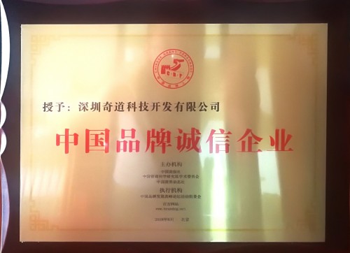 图:奇道科技荣获《中国品牌诚信企业》