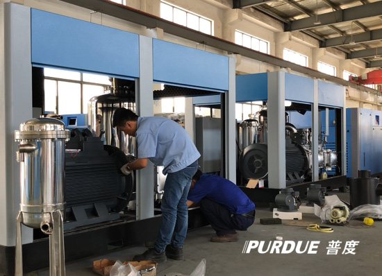 上海普度压缩机有限公司一心要将无油螺杆空压机打造成为业内的标杆性产品,公司组建高水平专家团队,研究了近三十年科学研究与生产实践的丰硕成果和大量国内外技术精华的结晶,创新性的采用系统设计,精工制造,在配件上使用了安全系数较高的防爆电机、防爆电控箱、防爆电磁阀,配备了设计科学、制造精密的压力传感器、进气阀、液位传感器等设备,整体设备还运用完善的控制技术,使设备节能高效,运行平稳可靠。压缩机密封设计绝对防止有害气体泄漏,可根据情况安排机器使用风冷或水冷两种冷却方式,厚铸铁汽缸和缸头减少了翘曲和减弱了机器的震动,降低了噪音,延长了机器使用寿命。而且系统的模块化设计可以轻松更换不同的尺寸的标准缸径,通过较少的花费就可以达到不同的性能要求,满足不同行业、不同使用环境的独特需求,为客户提供更加贴心的服务。在生产质量上,上海普度先后通过了iso9001质量管理体系认证、iso14001环境体系认证、压缩机节能产品认证,并通过了国家发展改革委、财政部、工业和信息化部的审核,进入了《节能产品惠民工程高效节能容积式空气压缩机》第二批推广企业目录。