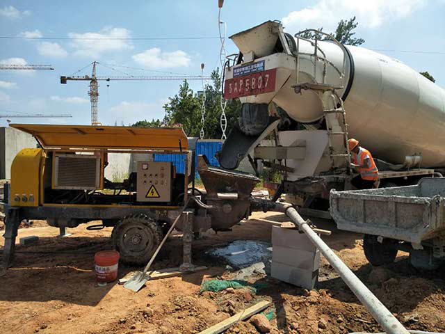 在处过程中,需要注意的是,向卧式微型细石混凝土泵供料中断时,若把料斗内的存料留得太少或完全泵空,那么再次来料泵送时,也会发生吸入空气而无法泵送的情况。如果混凝土的质量好,可采用几次反泵操作而使泵送正常化。如果质量一般,则需添加水泥砂浆才能恢复正常泵送。
