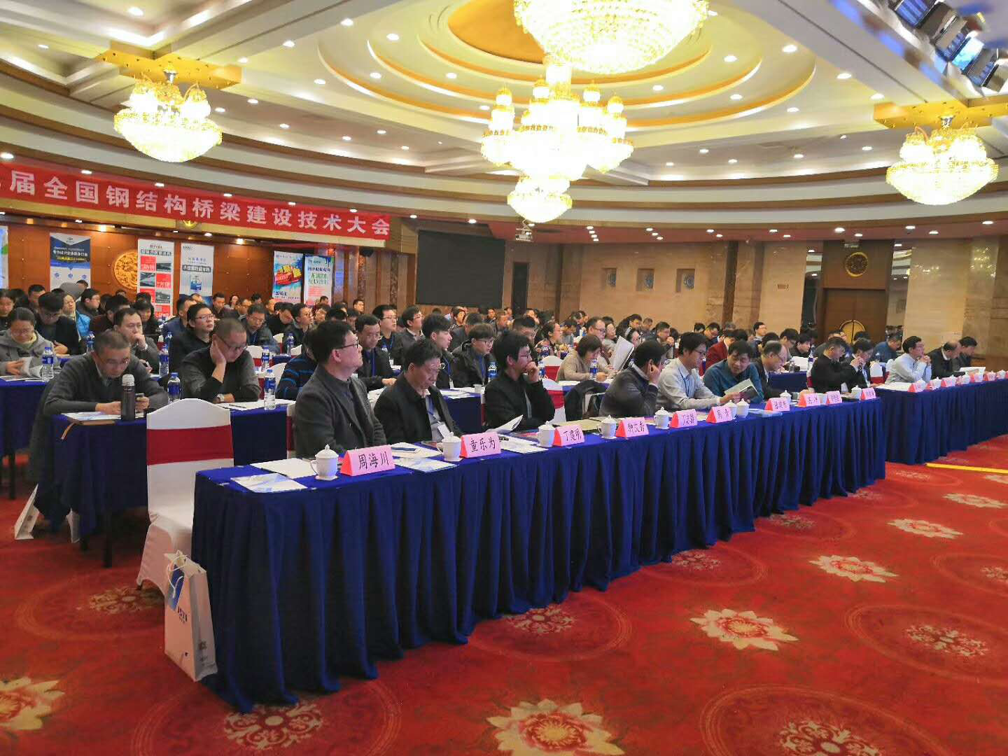 会议以助推中国钢结构桥梁建设新发展为主题,十余位桥梁领域的著名专家围绕会议主题重点探讨交流了波腹板桥梁、钢箱梁外板、正交异性桥面板钢箱梁等桥梁技术要点;南京长江五桥、马尔代夫、长沙梅溪湖钢结构景观等国内外优秀桥梁设计分析及桥梁钢的研发与应用等。各省市的路桥及钢铁行业领导和专家;桥梁设计、施工、制造单位、监理单位、科研单位、质量监督站等管理人员及工程技术人员;桥梁用钢生产和相关防腐、涂装及钢桥焊接的产品设备制造商等共计二百余位代表参加了此次大会。