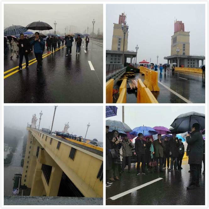 12月22号上午,正好赶上是冬至,但参会代表们仍满怀着参观学习的热情,迎着南方冬季的小雨,在苏交科科研管理部韩经理的带领下,踏上了南京长江大桥修复现场的参观之旅:在这雾蒙蒙的细雨中,南京长江大桥项目部的耿部长耐心地为大家讲解大桥修复过程中所涉及到的各方面施工技术、难题等。大家纷纷进行认真的交流与探讨。这种相互学习的热情值得称赞!