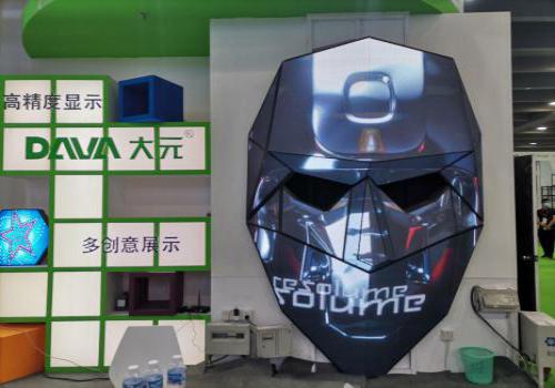 大元智能展台上最引人注目的还是尺寸为1.98*2.95米的p4 led面具屏。这是一个立体感十足又非常酷炫的创意异型定制led显示屏“面具”。巨大的“面具”立于展台之中,吸引了无数人上前合影拍照。