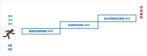 项目整体规划三年,稳步有序实施:从首期的理念导入、文化渗透、能力提升及品控网搭建切入务实基础;再结合产品特性从统计控制、防呆防错、标准化作业等方面探索专业质量工具的实践运用实现公司质量数字化建设;最后打破信息孤岛,建立全面质量管控网络,完成全价值链的大质量体系搭建。拟通过三年时间,夯实技术、质量管理基础,推动质量想信息化、智能化升级,促进成为行业标杆。