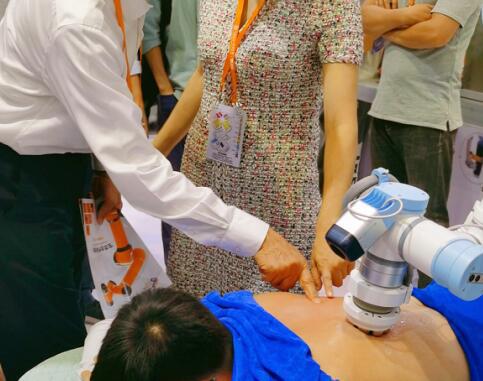 在本届展会上,秀域与遨博智能联合新品秀域超v热动力人工智能ar机器人亮相展会。在现场,秀域为展会来宾展示其真实操作场景,让来宾们亲身体验秀域超v热动力ar机器人智慧人体感知、6d机器手臂、远红外诊疗、靶向热疗等强大功能,这些功能将助力秀域实现客户私人健康方案,并根据方案完成健康调理。