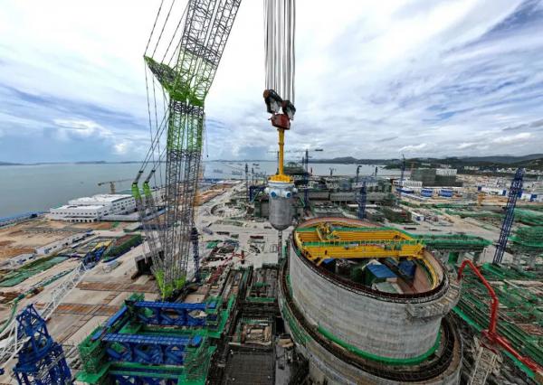 8月9日,我国自主三代核电华龙一号批量化工程——中核集团漳州核电2号机组反应堆压力容器顺利吊装就位。这是该机组继三台蒸汽发生器吊装成功之后,主设备预引入工作再次取得的重大进展,为后续内穹顶吊装及主管道焊接创造了先决条件。