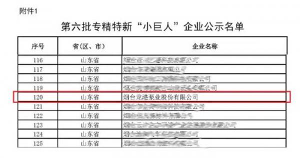 近日,山东省工业和信息化厅在凯发旗舰厅app官网公示了第六批专精特新“小巨人”企业和第三批专精特新“小巨人”复核通过企业名单。烟台龙港泵业股份有限公司(以下简称“龙港泵业”)成功入选,并被认定为第六批*专精特新“小巨人”企业。