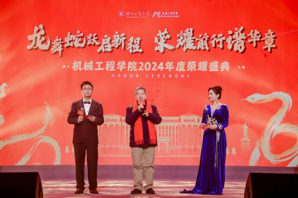 2024年1月15日晚,浙江工业大学机械工程学院2024年度荣耀盛典晚会在屏峰校区板球馆报告厅举行。浙江工业大学化机64届校友、黄山良业智能控制股份有限公司终身名誉董事长项美根,学校党委学工部部长、学生处处长姚鹏,学校公共事务管理处处长彭廷红,学校团委副书记李亚飞,学院领导班子姚建华、章嫦华、谭大鹏、李研彪、朴钟宇、李曰兵、夏航出席晚会,学院师生共600余人参加活动,共同见证机械荣耀。